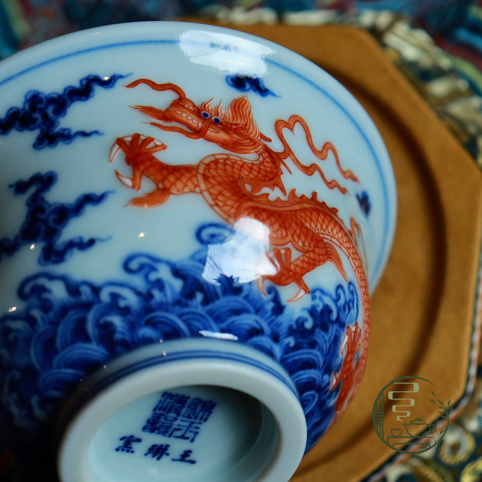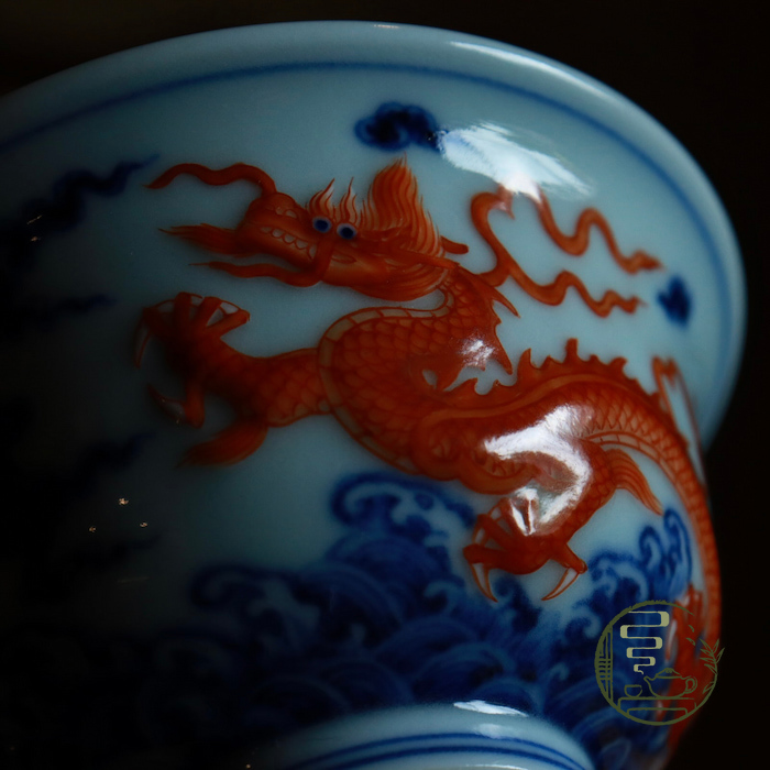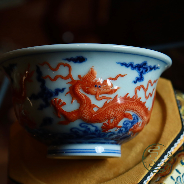 Phàn Hồng Phù Điêu Song Long Áp Thủ Bôi
