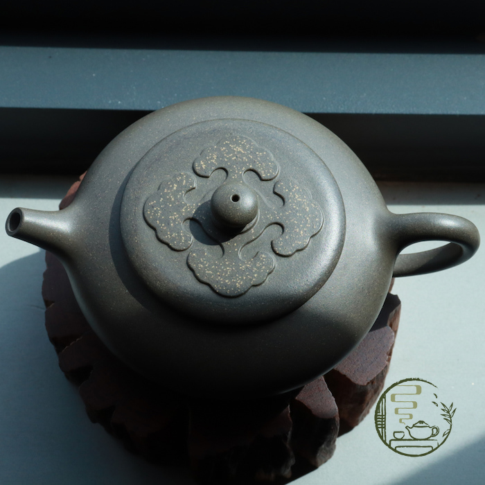 Điểm nhấn đặc biệt chính là hoạ tiết hoa văn Như Ý trên nắp ấm phỏng theo tác phẩm kinh điển "Tam Túc Như Ý" của Thời Đại Bân. Với 4 cánh đối xứng đắp nổi trên nắp ấm được thực hiện tinh xảo công phu, hoa văn hiện rõ nét, nổi khối sinh động, tăng chiều sâu thị giác. Các đường nét hoa văn uốn lượn mềm mại, uyển chuyển mà mạch lạc, từng độ cong đều được xử lý chuẩn xác.