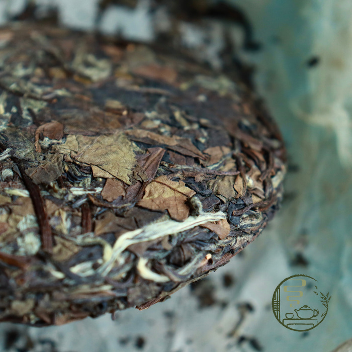 Sau hơn mười năm lão hóa, những sợi lông trắng trên bánh trà vẫn rất nổi bật, và lá trà cũng rất khoẻ. Nhìn kỹ có thể thấy trà rõ ràng đã thay đổi màu sắc từ màu xanh bạc sang tông màu nâu hiện tại. Đây là "màu gỉ" huyền thoại của lão bạch trà, là dấu hiệu của sự kết tủa thời gian.